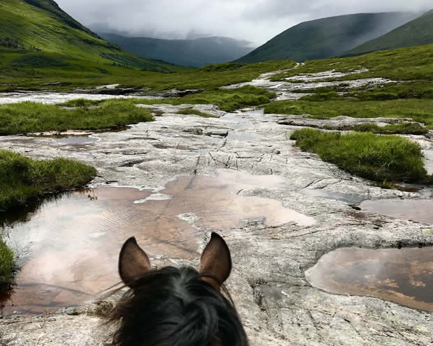 Clouds close overhead and the smell of petrichor fills us with an earthy anticipation. As we hurriedly pack up, and tack up, a stinging creeps across the bare skin of our forearms and necks, and the ponies’ eyes are kohl-rimmed with minute life forms; the midges have risen undercover of the clouds to feed on our blood.